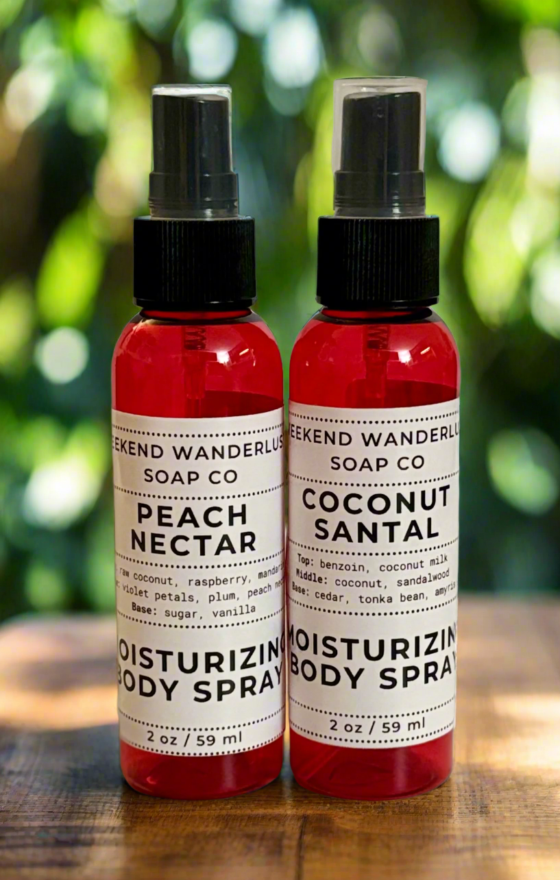Experience the ultimate in skin nourishment with our Moisturizing Body Spray. This specially formulated blend of humectants draws moisture to the skin, leaving you feeling soft, smooth, and silky without any irritation. Unlike traditional body sprays, our formula contains no alcohol, ensuring a gentle touch that won't burn or dry out your skin.