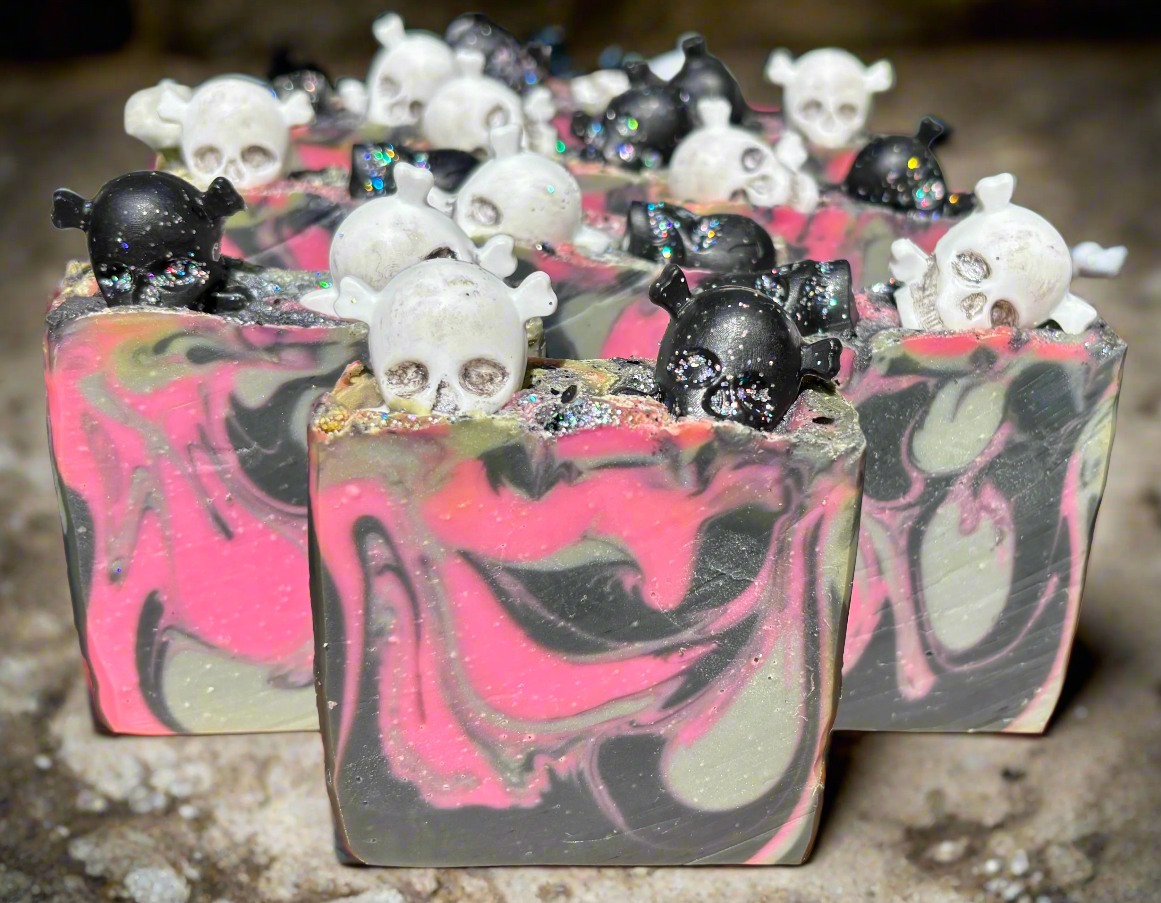 - Unique Gothic Detail: Topped with eerie mini soap skulls for a darkly elegant finish