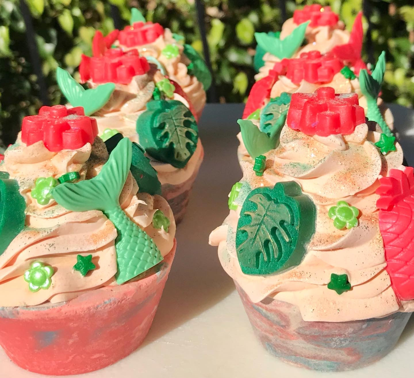 - Playful Tropical Designs: Each cupcake soap is decorated with fun tropical elements like pineapples, mermaid tails, and monstera leaves for a beach-inspired vibe
