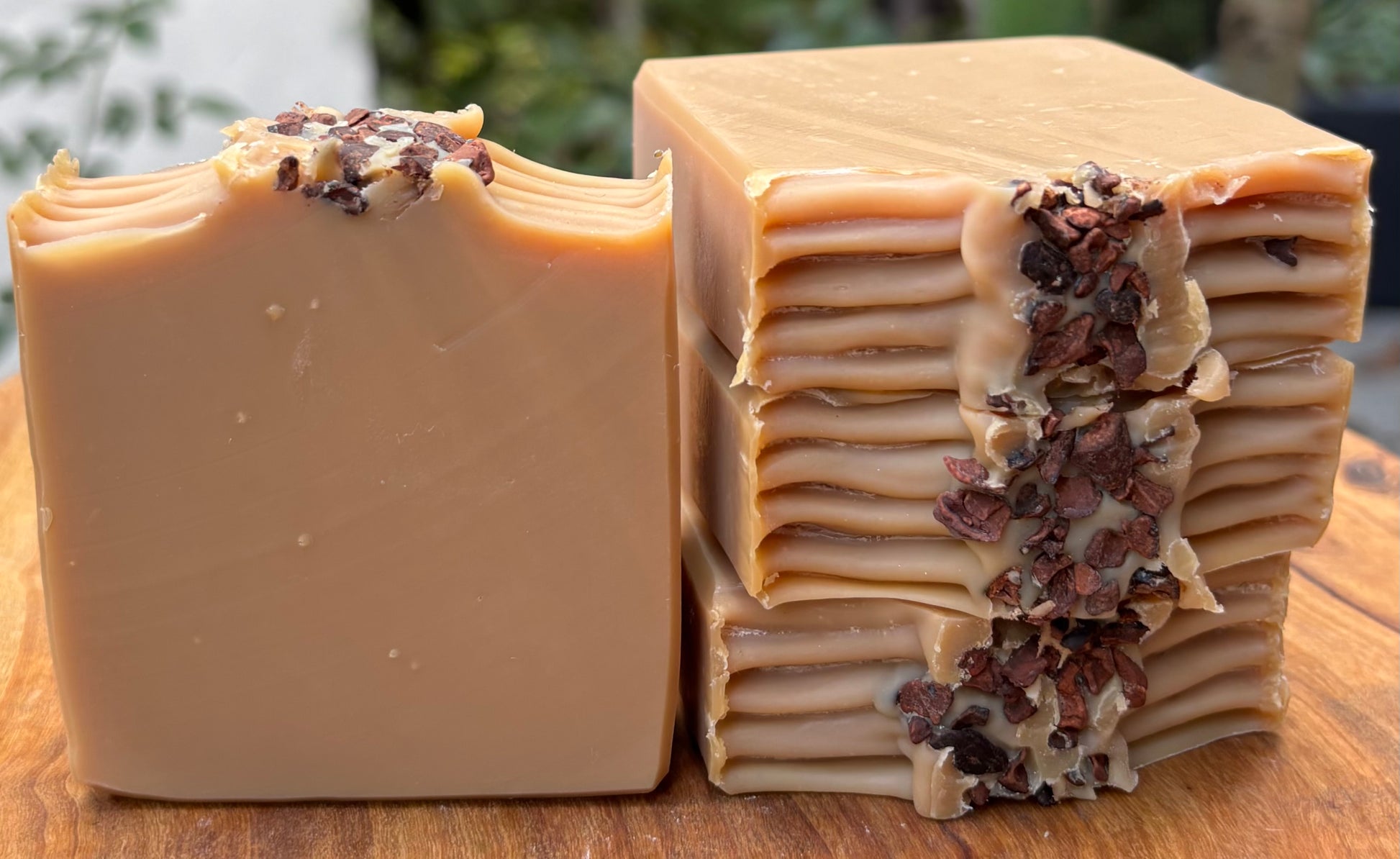 Ingredients: organic coconut oil, canola oil, olive oil, distilled water, grapeseed oil, sunflower oil, sodium hydroxide, palm kernel flakes, sodium lactate, fragrance, kaolin clay, cocoa nibs
