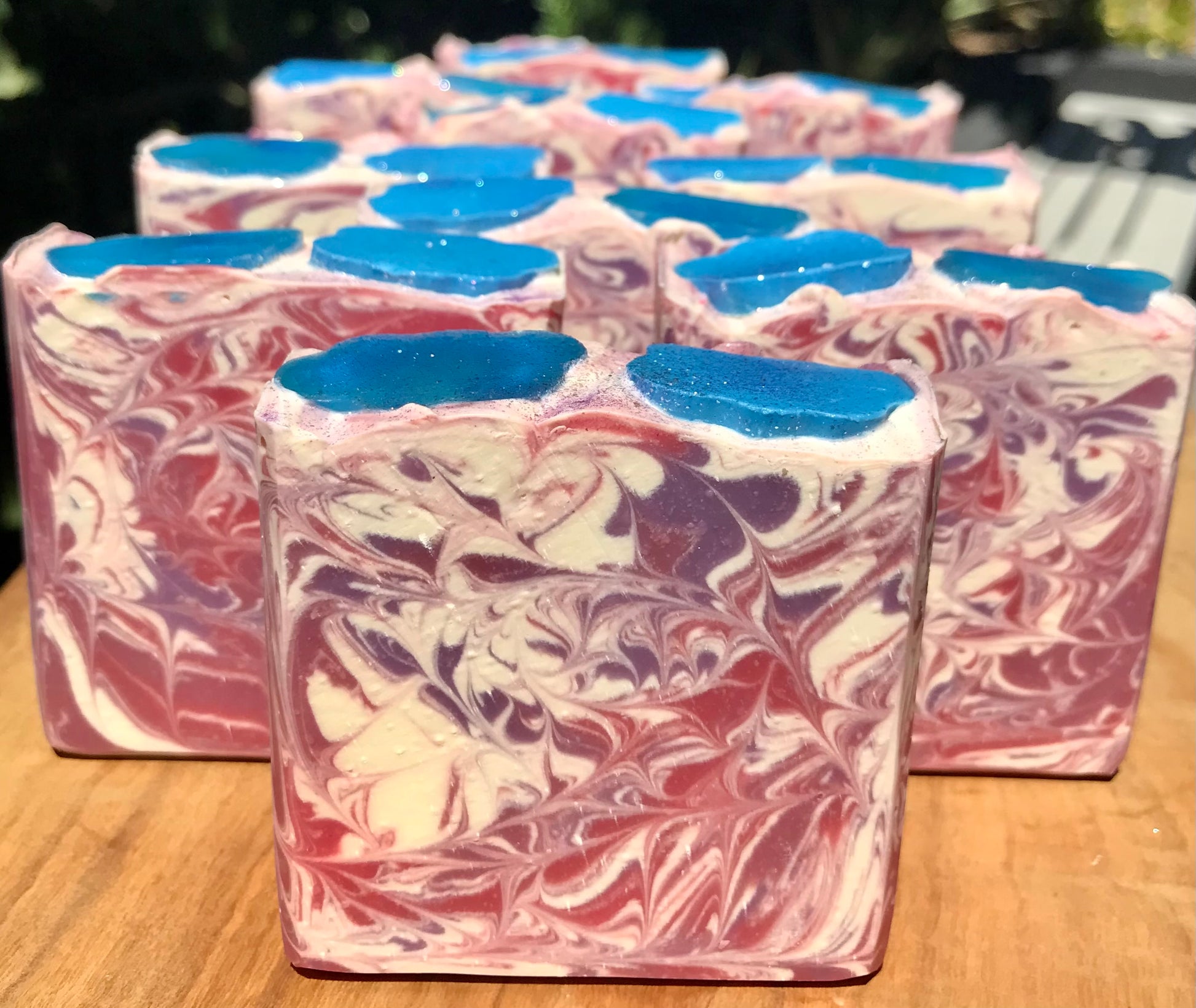 CP ingredients: organic coconut oil, organic sustainable palm oil, canola oil, distilled water, olive oil, grapeseed oil, sunflower oil, cocoa butter, sodium hydroxide, fragrance, sodium lactate, kaolin clay, body safe oxide colorant
