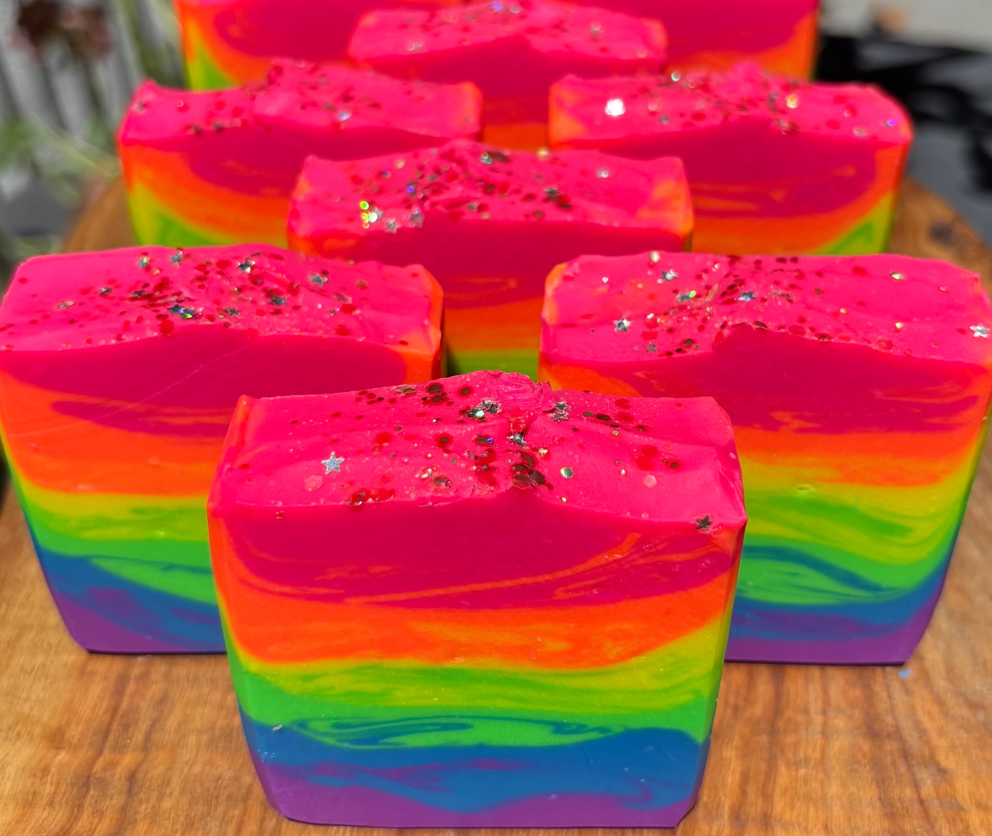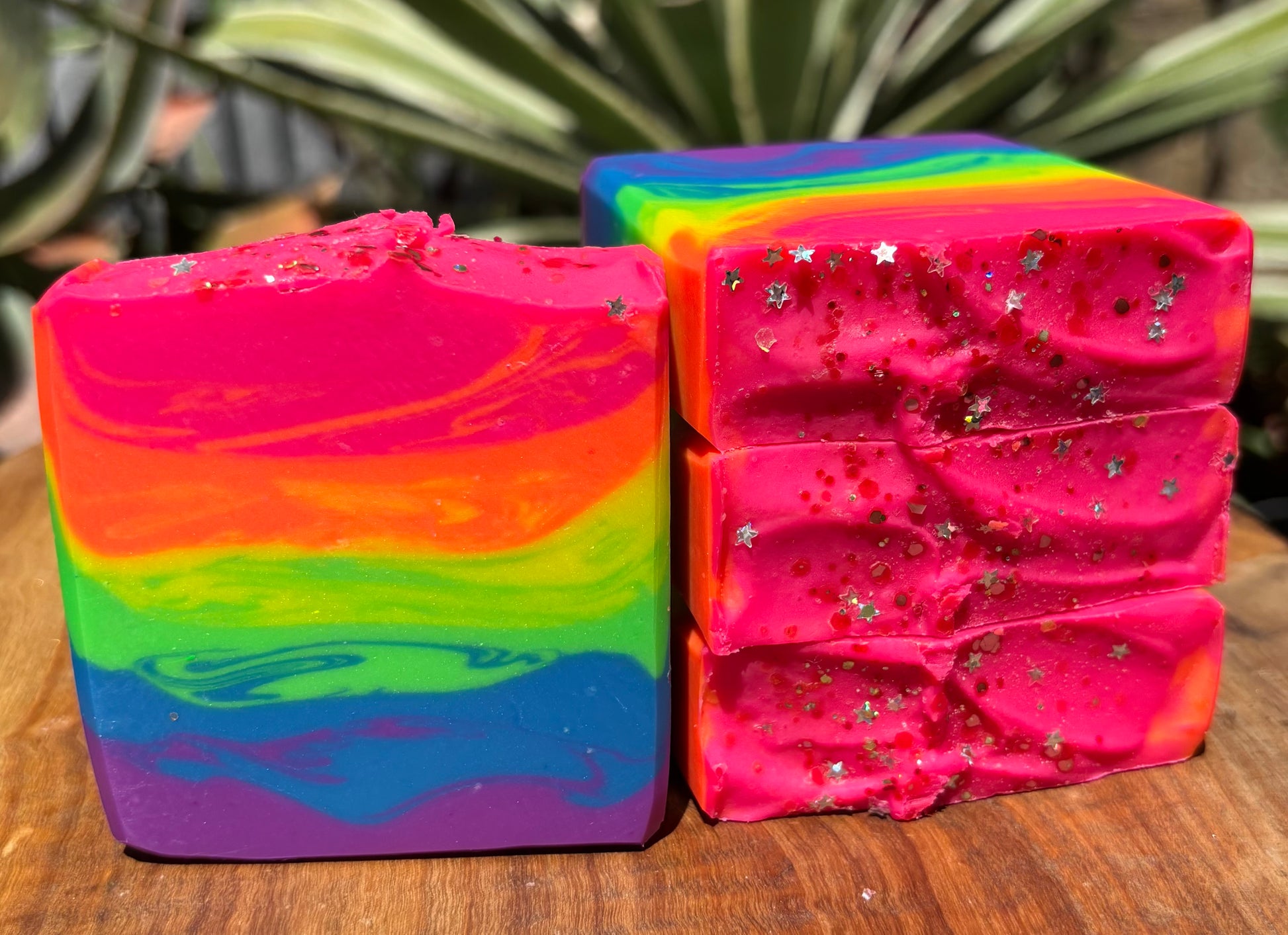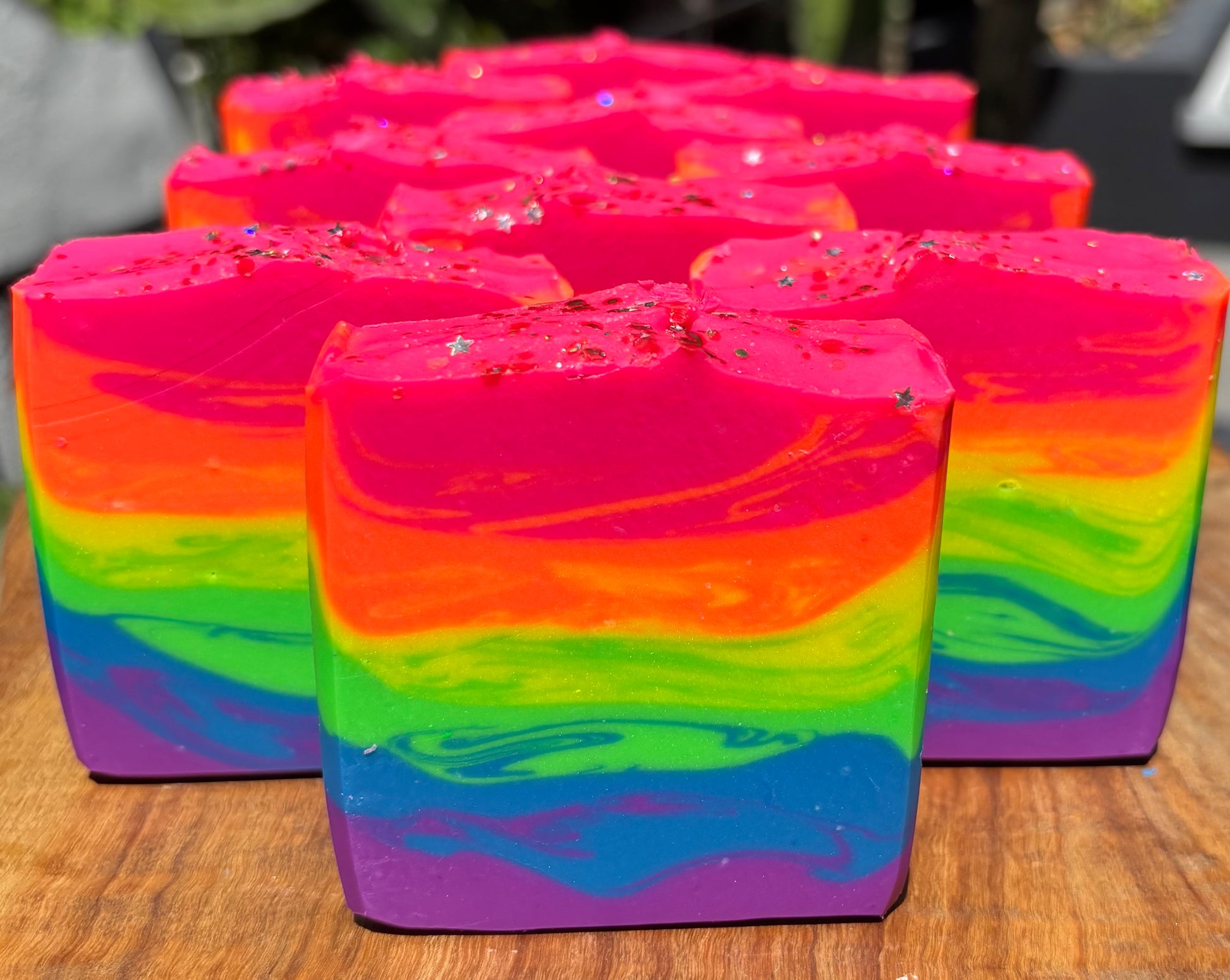 Immerse yourself in a tropical escape with our Artisan Bora Bora Soap, expertly handmade in our studio using premium organic coconut oil and olive oil. This luxurious soap offers a creamy, rich lather that not only cleanses but also moisturizes your skin, leaving it feeling soft and supple. With its striking, multi-colored design reminiscent of a vibrant rainbow, this soap adds a splash of color and joy to your bath routine and this fragrance offers a delightful, tropical bouquet that transports you to a serene sunset on a distant beach in French Polynesia.
